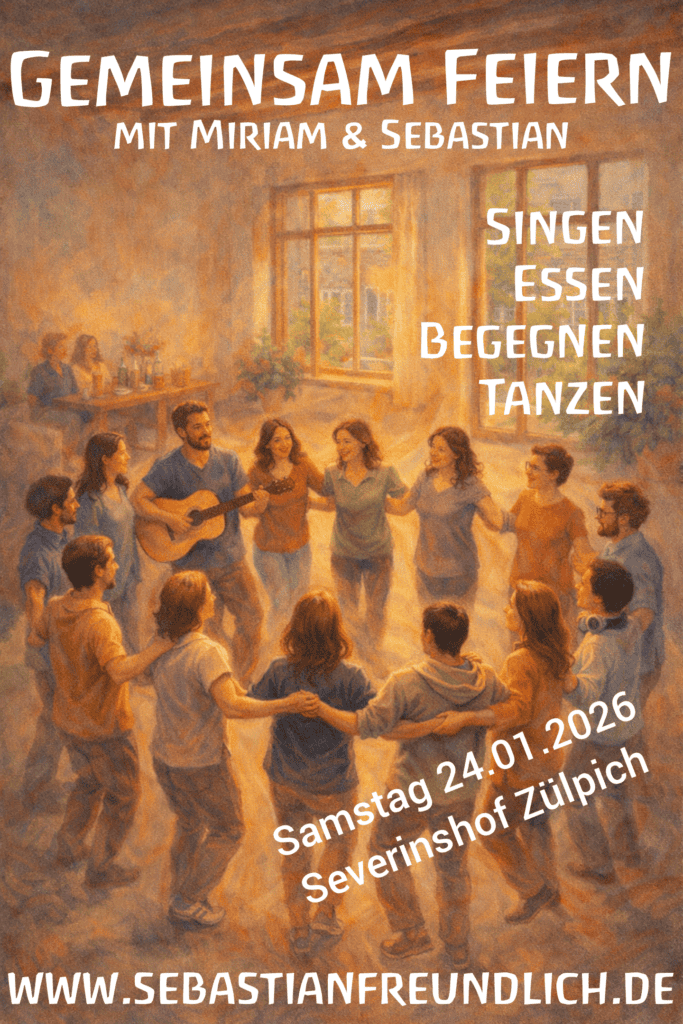Am Samstag, den 24.01.2026, laden Miriam (www.miriamrosenherz.de) und ich zu unserem neuen Programm „Gemeinsam Feiern“ ein. An diesem Tag schaffen wir einen Raum für achtsame Begegnungen, für ein Miteinander, das von Wärme, Offenheit und Herz geprägt ist.